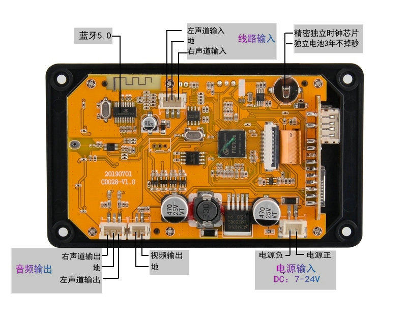 Bluetooth 5.0 lossless music MP3 decoding board APE FLAC WAV player U disk TF card FM radio