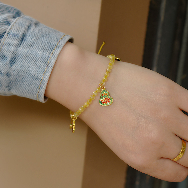 Blonde crystal fine hand lucky transfer gold titanium crystal natural yellow crystal single circle braided bracelet girl birthday gift