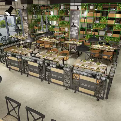 Decoration hot pot dining room screen Hotel flower rack Industrial wind wall half green plant low wrought iron partition card seat guard fence