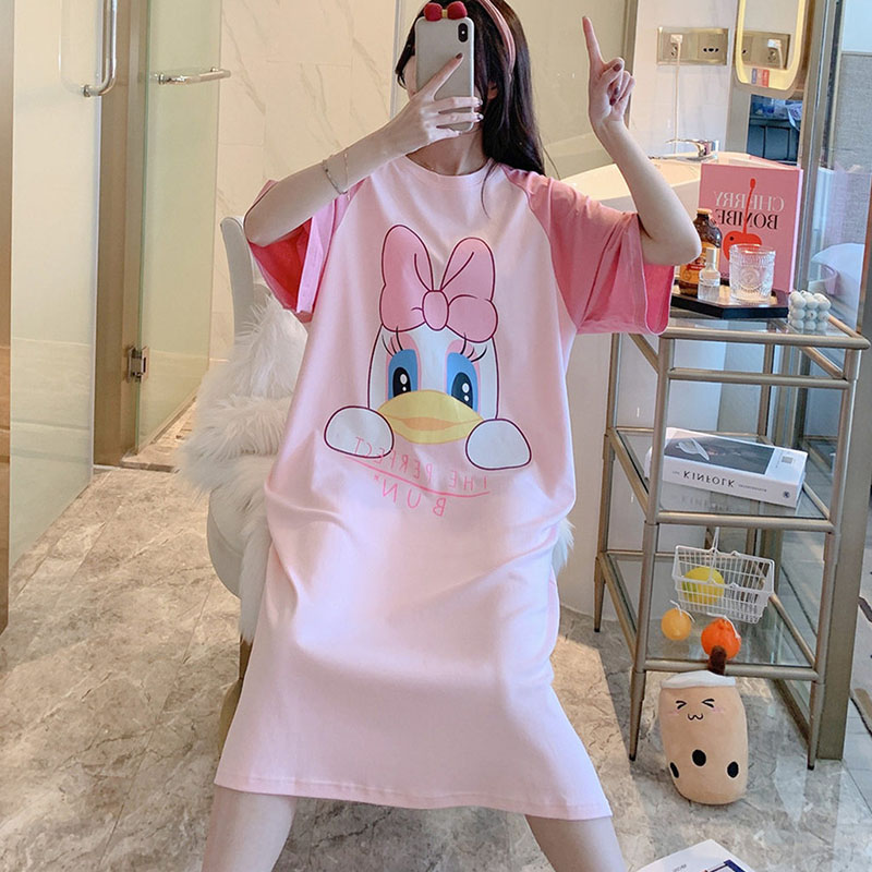 Summer Sleeping Dress Woman Summer Pure Cotton Cute Day Ensemble Sweet Strawberry Big Code Fat Mm Loose Skirt Pregnant Woman Sleepwear Summer-Taobao