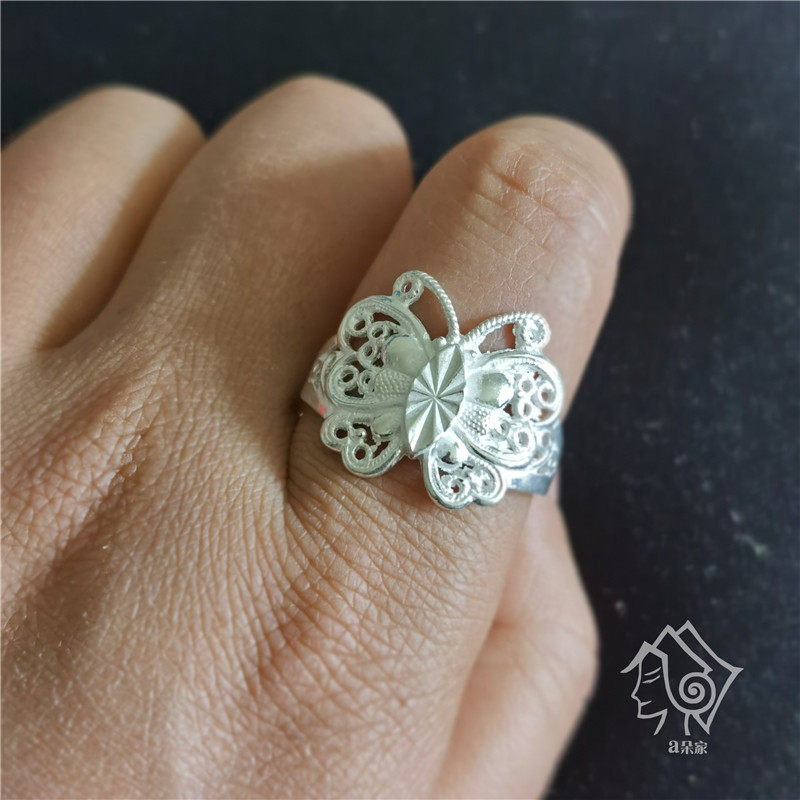 Butterfly ring Liangshan Yi ethnic pure silver ring female opening creative design hollowed-out carved flower butterfly ring silver jewelry