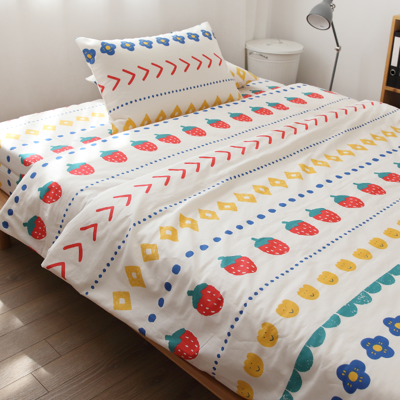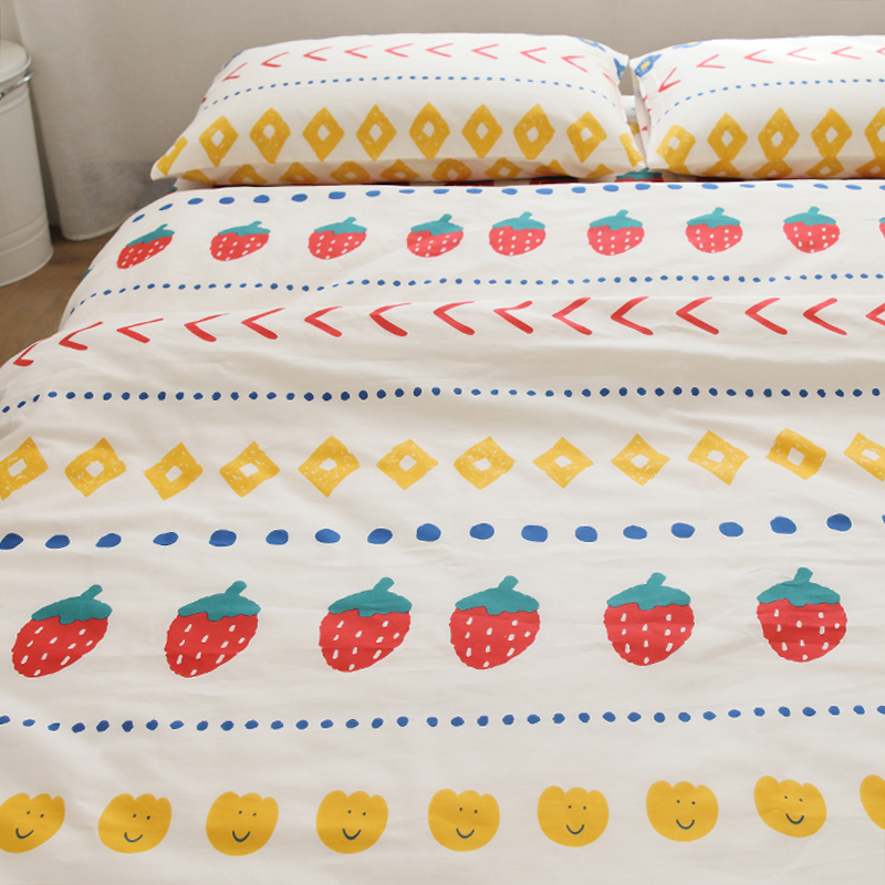 AFISHTANG STRAWBERRY OBJECTONIAN CARTOON PURE COTTON TWILL LINEN QUILT COVER FULL COTTON QUILTED WITH HOOD BED single double