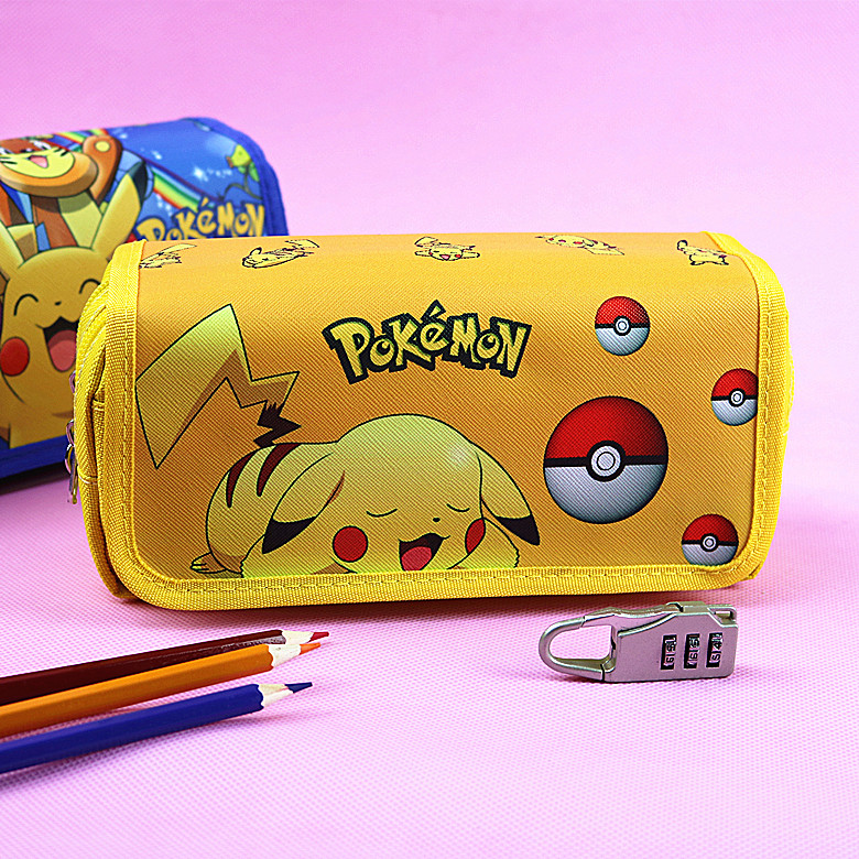 Pokemon pencil case Pokémon Pikachu large-capacity stationery box four-layer password lock student storage box