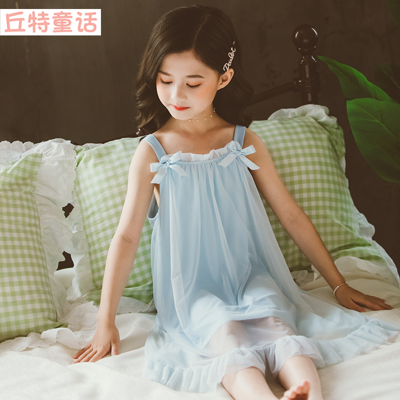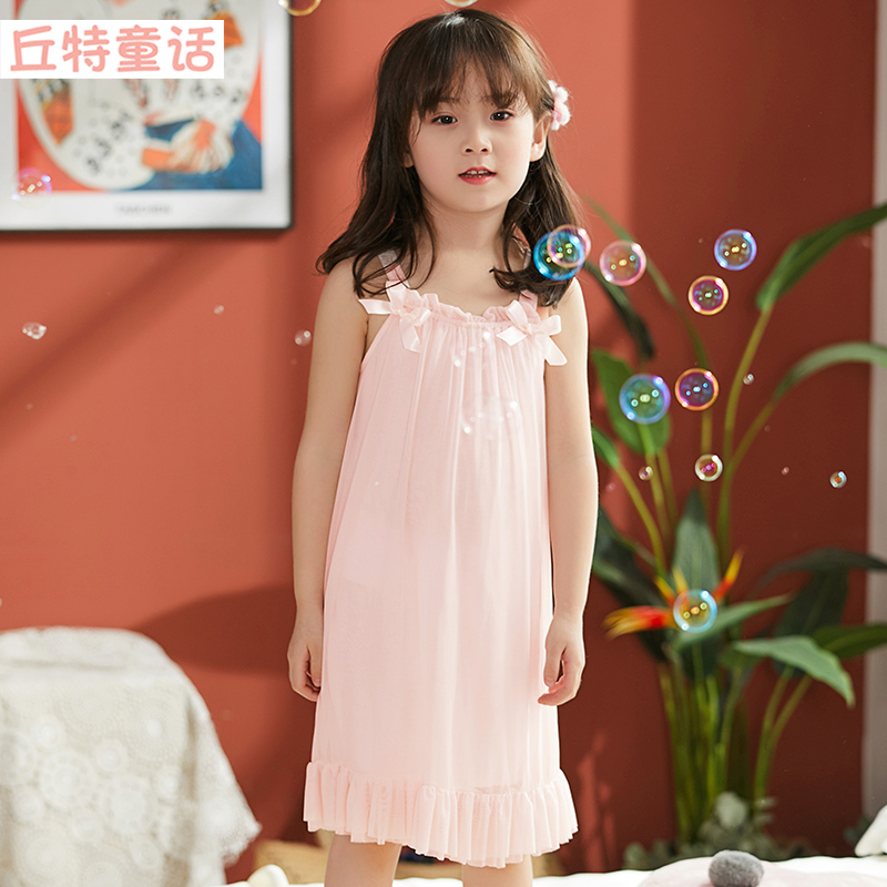 Girls Summer Nightgown Children's Princess Pajamas Suspenders Fairy Skirt Little Girl Thin Baby Home Clothes Sweet