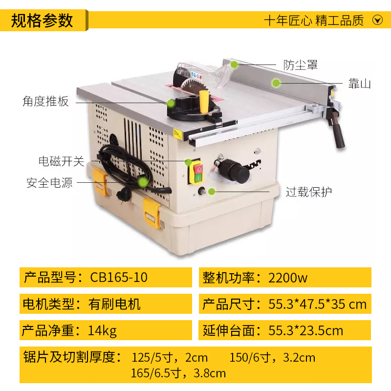 Dust pa dust-free saw 165-10 decoration type multi-function woodworking table saw Whole house custom whole cabinet installation household chamfering