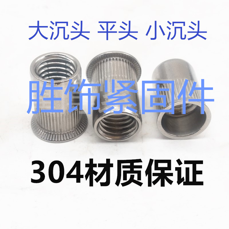 304 stainless steel riveting nut size riveting nut M3M4M5M6M8M10M12 flat head pull hat riveted