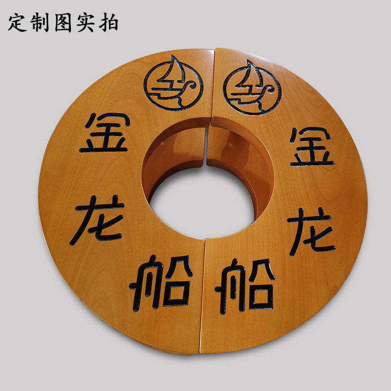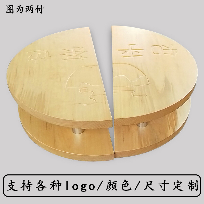 Round Wood LOGO Semi-circular Log Glass Door Handle Chinese Solid Wood Individuality Engraving Character Gate Handle