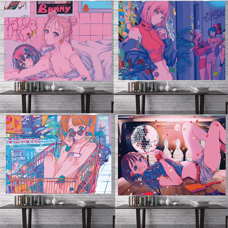 Background cloth in wind vertical wall cloth cute girl wall bedroom bedroom wall dormitory decoration room tapestry