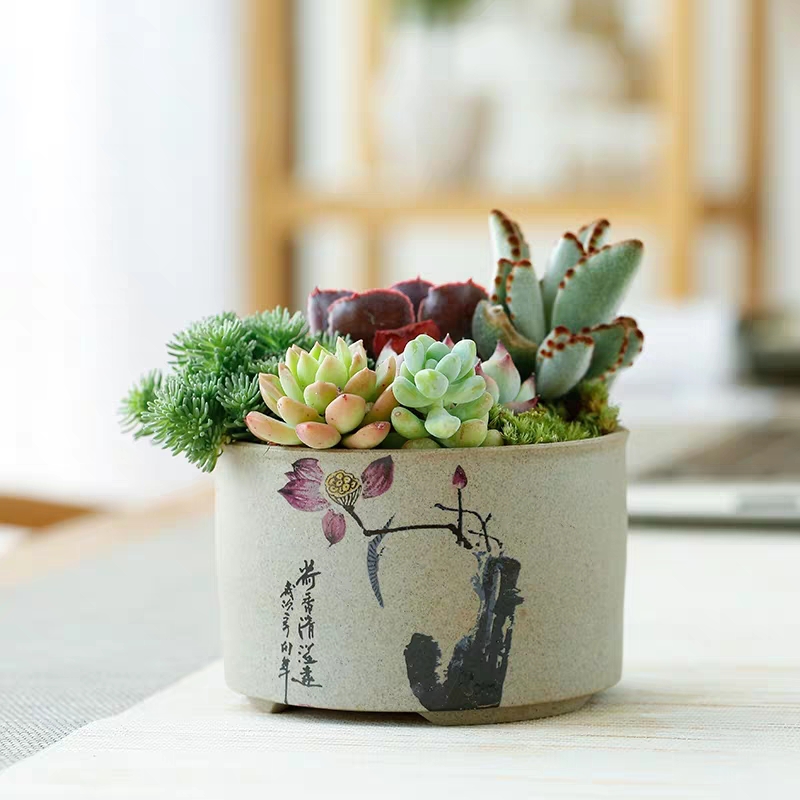 Succulent flower pot ceramic plant Zen simple medium-sized household large fleshy rough pottery flower pot special clearance