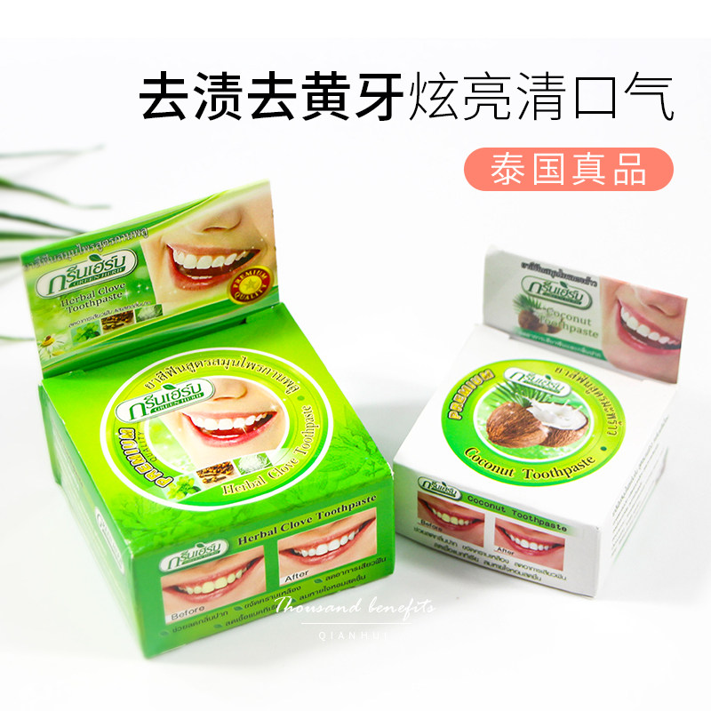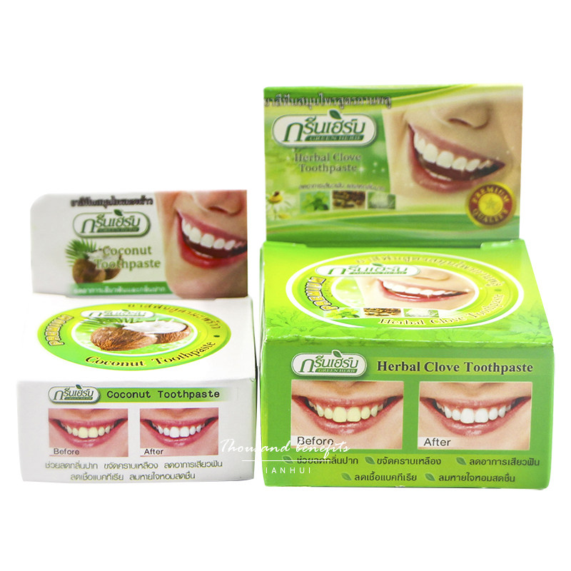 Thailand GREENHERB tooth powder toothpaste quick quick whitening tooth cleaning white to smoke tea stains black yellow stains