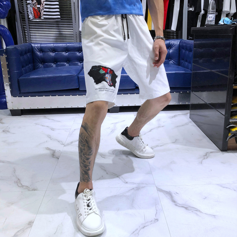 European station 2020 summer men's new trendy brand solid color personality printing all-match trend casual shorts beach pants