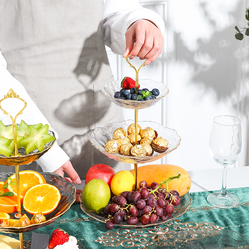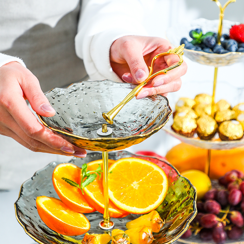 Net red glass fruit plate home living room pastry plate creative double-layer snack candy plate personality fashion dry fruit plate