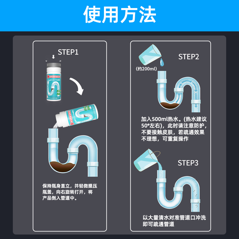 Pipe dredging agent strong through the sewer odor deodorant artifact Kitchen oil dissolves through the toilet toilet blockage