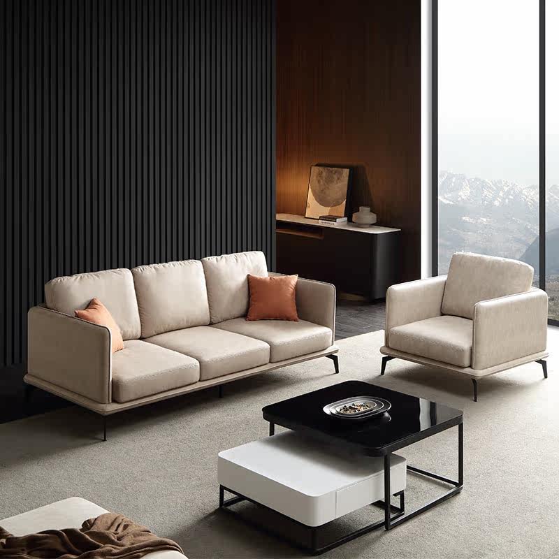 Small apartment simple modern technology fabric sofa four-seater living room combination three-person Nordic ins style fabric sofa