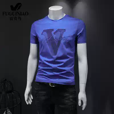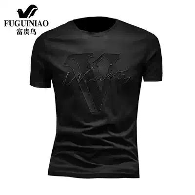 Rich bird mercerized cotton round neck T-shirt men's short-sleeved summer 2021 thin high-end embroidered men's half-sleeved shirt