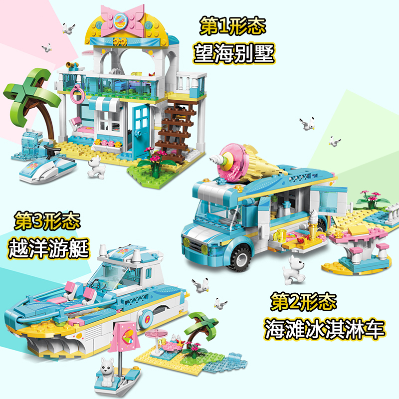 Girl's Home 3-in-1 (194 pieces) Holiday Travel 3-in-1 (316 pieces) Ice Cream Truck (212 pieces) Leah's Bedtime Story (269 pieces) Abby's Coffee Shack (