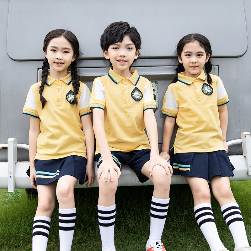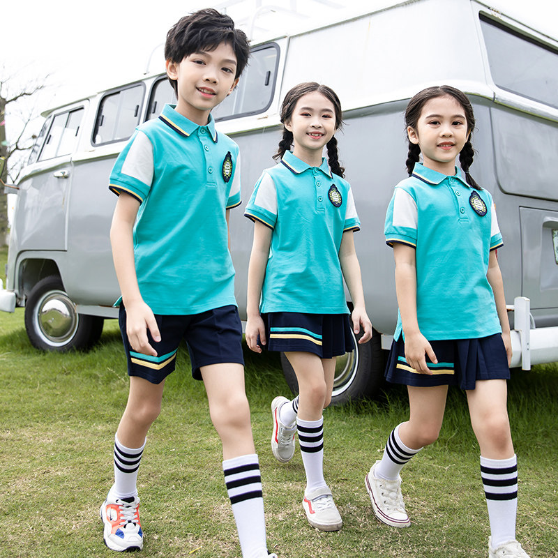Summer primary school uniforms Customized Kindergarten Garden Uniform Summer Pure Cotton Class Clothing Customised Children Polo Shirt Shorts Suit