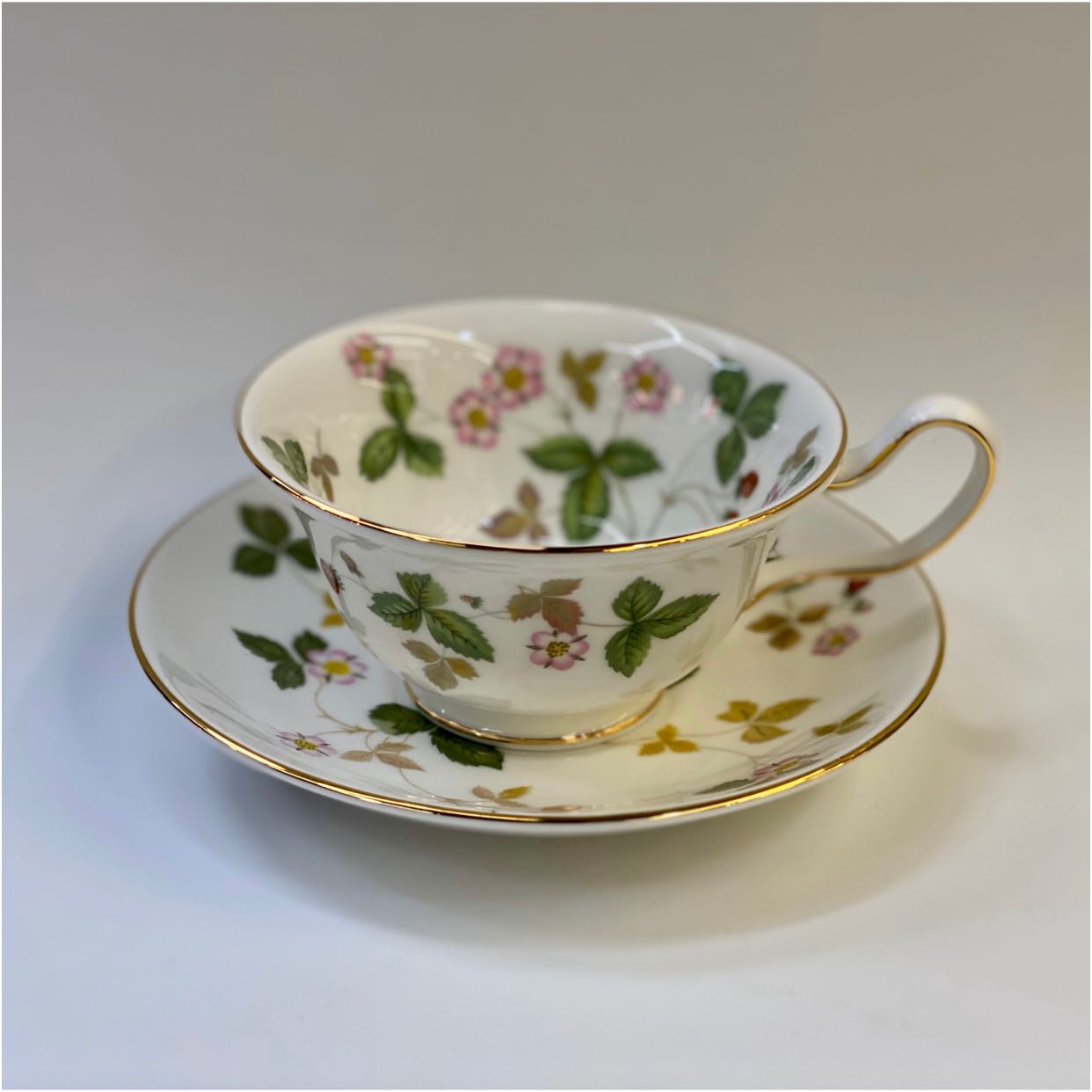 Spot WEDGWOOOD LIVE WILD STRAWBERRY FLOWER TEA CUP DISC BONE CHINA Porcelain Eurostyle Coffee Cup Saucer Afternoon Teacup Tea Saucer