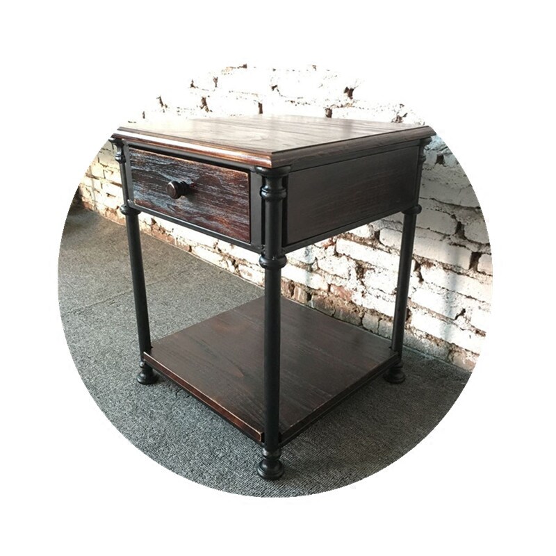 Through Accessories Beauty Iron Art Solid Wood Bed Head Cabinet Drawer Side Cabinet American Retro Industrial Wind Storage Containing Furniture a few