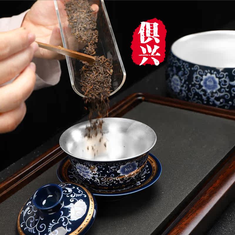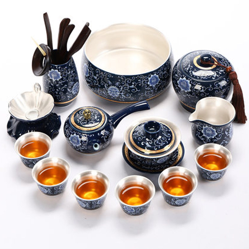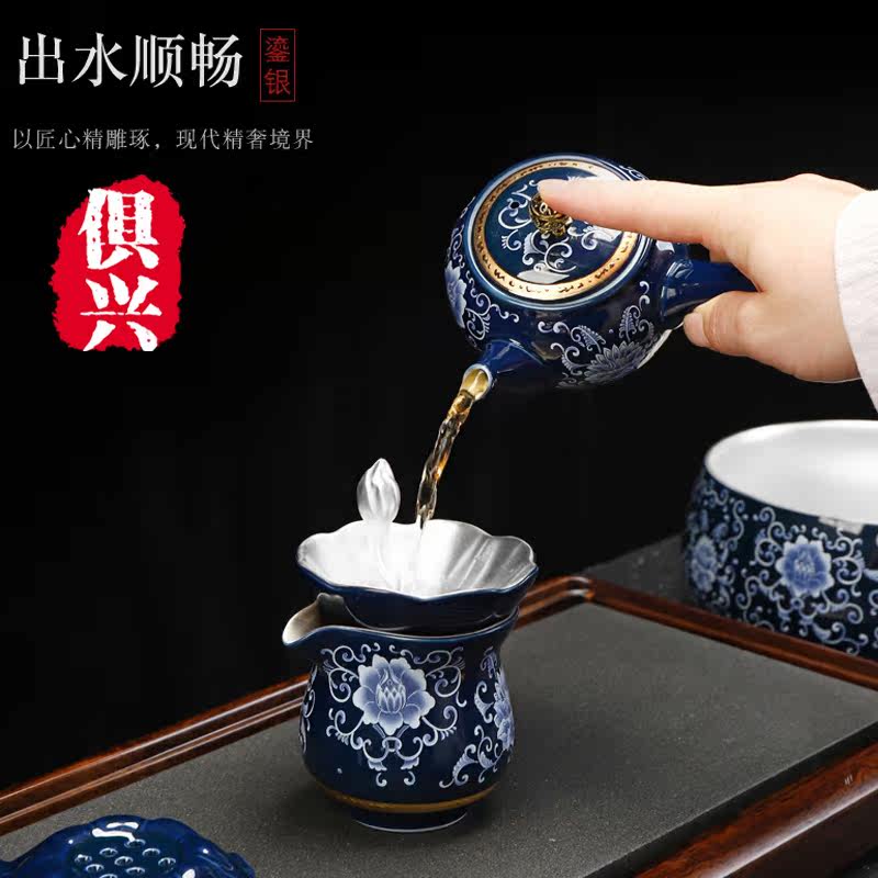 Jingdezhen gilt silver kung fu tea set set household ceramic teapot teacup tea bowl gentleman six sets of gifts
