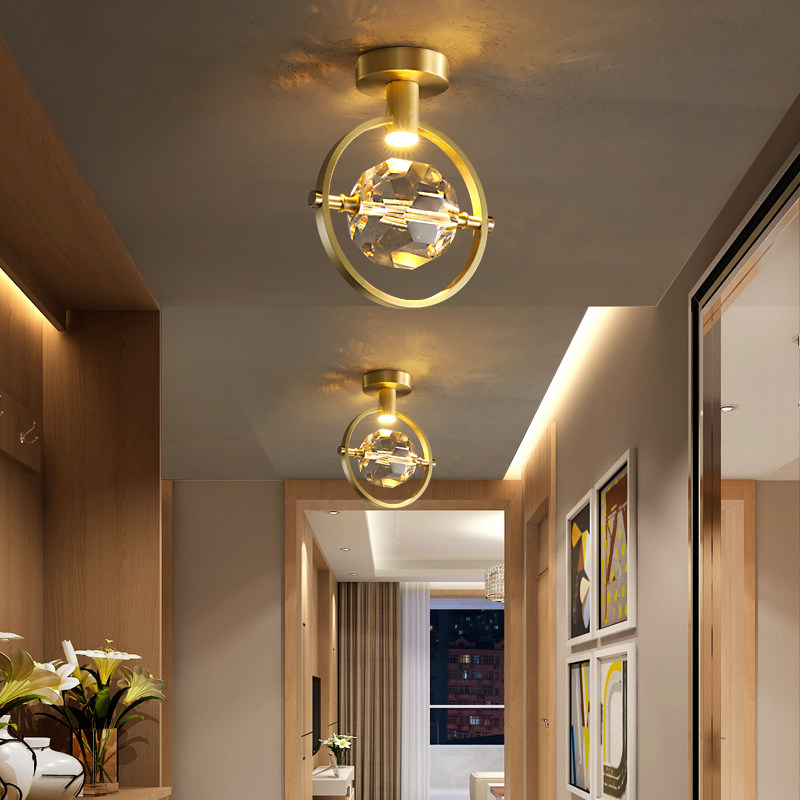 Full copper Living room Aisle Light Hallway Lights rear Modern Light Extravagant Crystal Suction ceiling lights Guan Guan Lights into the family American Small Chandeliers