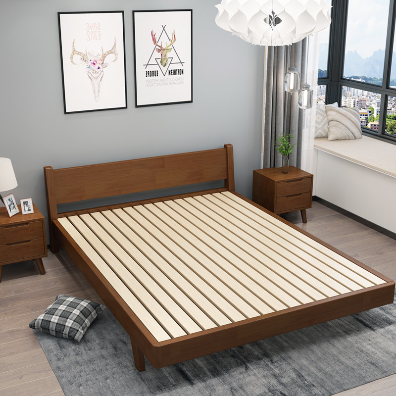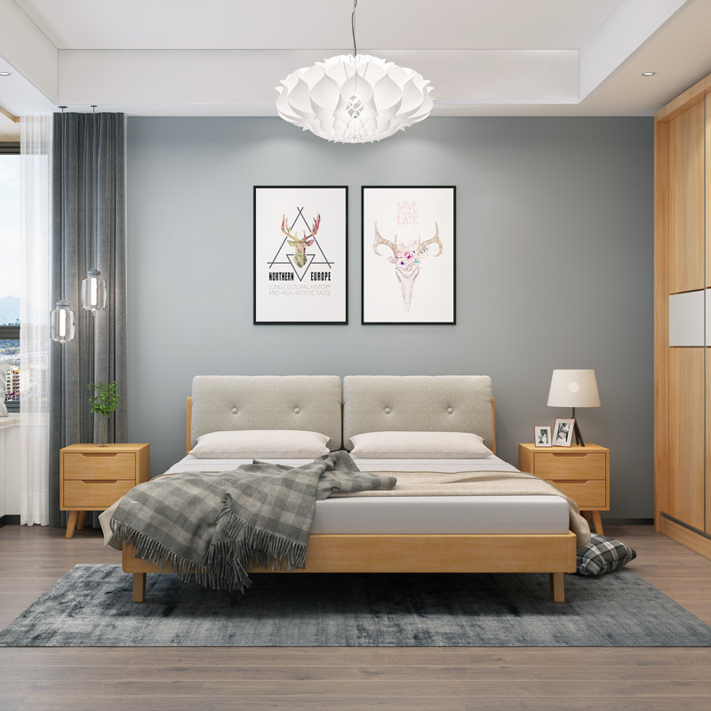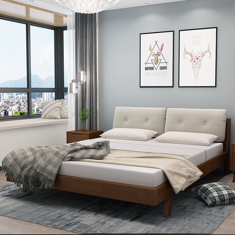 Factory direct Nordic soft bed Solid wood bed Small apartment low bed Double bed Girl bedroom Girl master bedroom Wedding bed