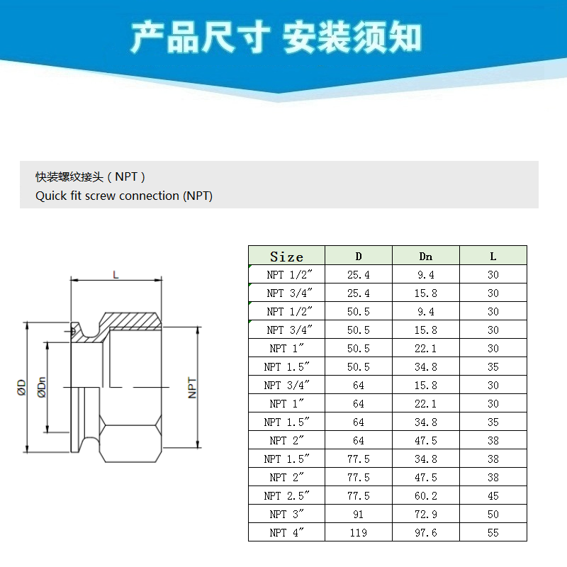 304 316L Stainless Steel Sanitary Quick Fit Female Thread Fitting NPTAmerican Thread Collet Quick Fitting