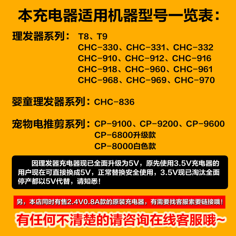 5V1A Original Dress Codests Pet Electric Pushback Hairdresser Charging Wire Accessories CP-9100 9200 9600