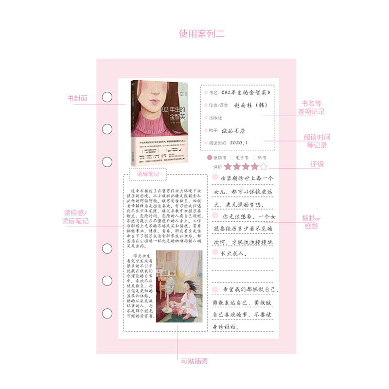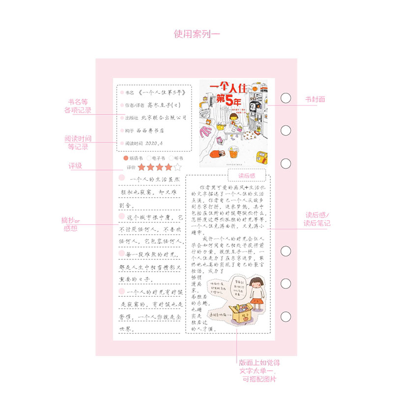 Reading notes hand ledger loose-leaf tilter A5 chipped A6A7 chic A6A7 book review card hearing book reading record original new product