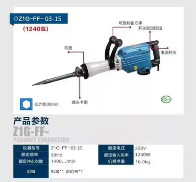 Dongcheng power tool 65 electric pick slab crushing 02-15 04-15 high power industrial grade concrete heavy duty