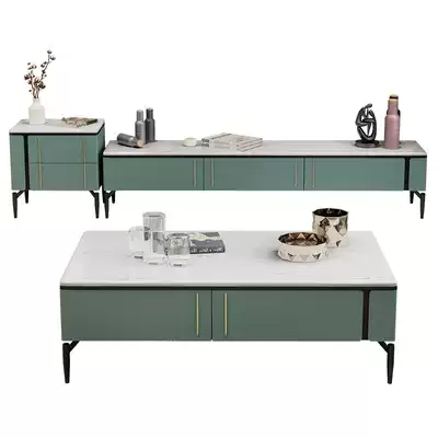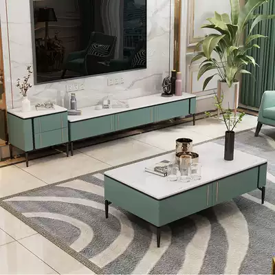 Light luxury marble TV cabinet coffee table combination Modern simple dark green TV cabinet Italian small apartment floor cabinet