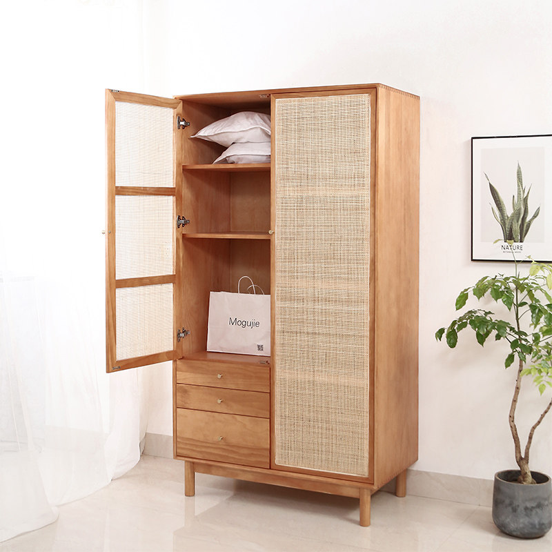Solid Wood Rattan Wardrobe Folk Juku Style Wardrobe Modern Bedroom Designer Home Containing Minimalist Composition Closet-Taobao