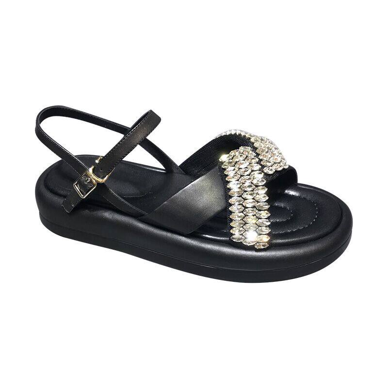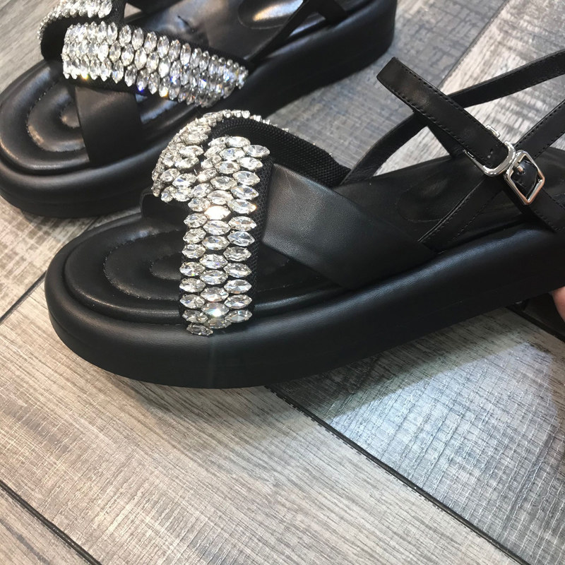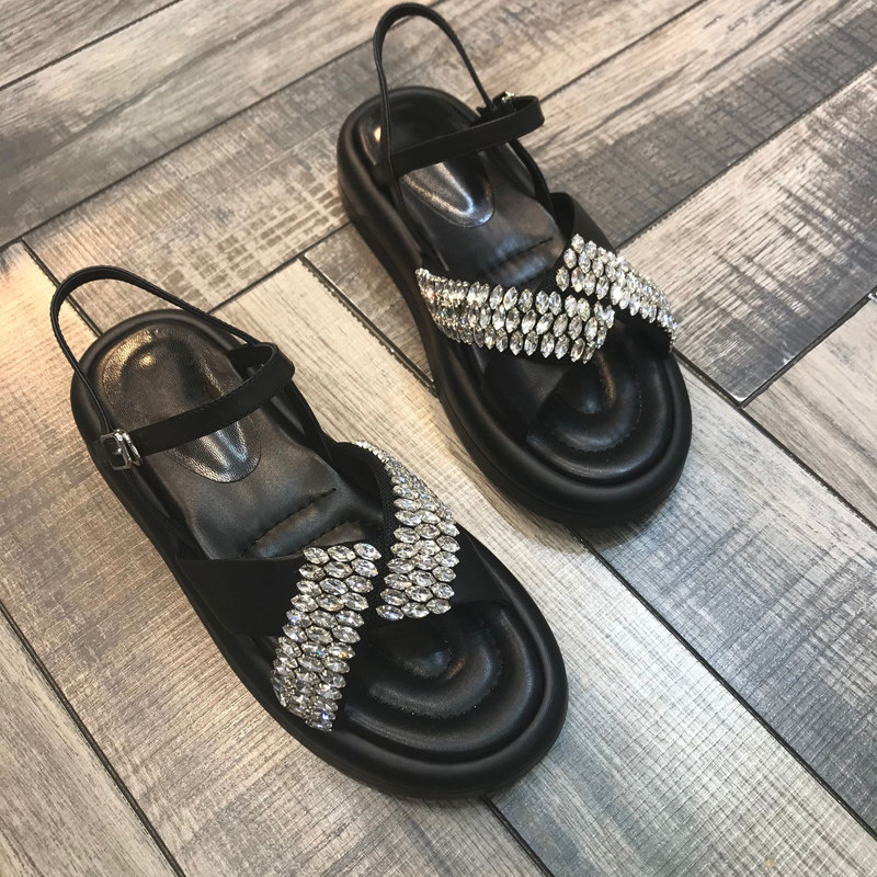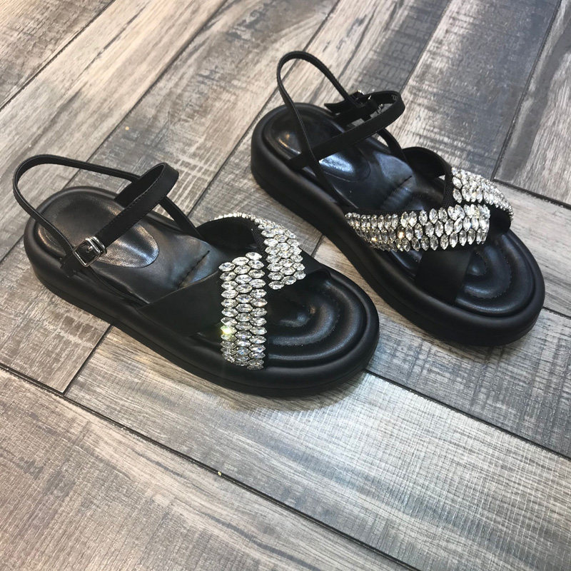2022 European station summer new cross rhinestones open toe muffin bottom one word buckle fashion thick bottom sandals women's tide