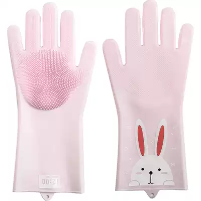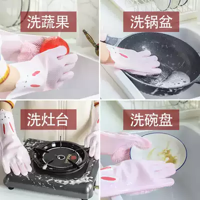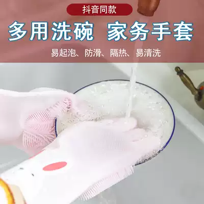 Korean multifunctional magic silicone dishwashing gloves female kitchen housework durable waterproof cleaning dishwashing brush bowl durable