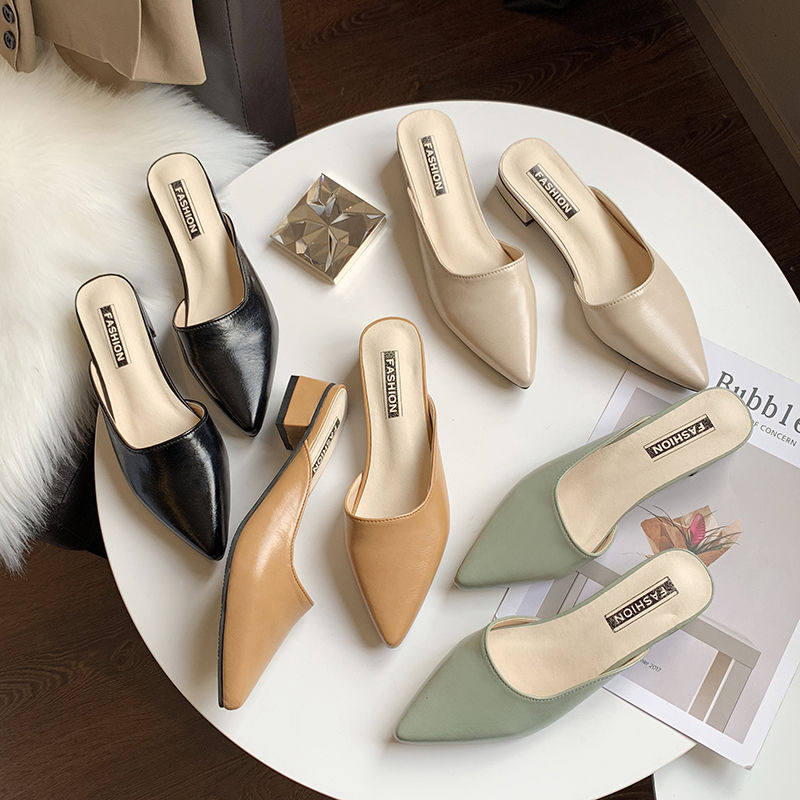 New new semi-slippers baghai Han-hai red fashion outer wearing pointed head coarse heels slippers