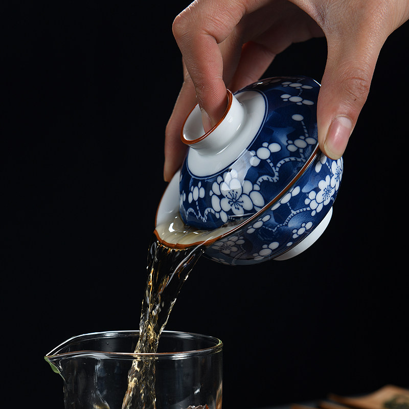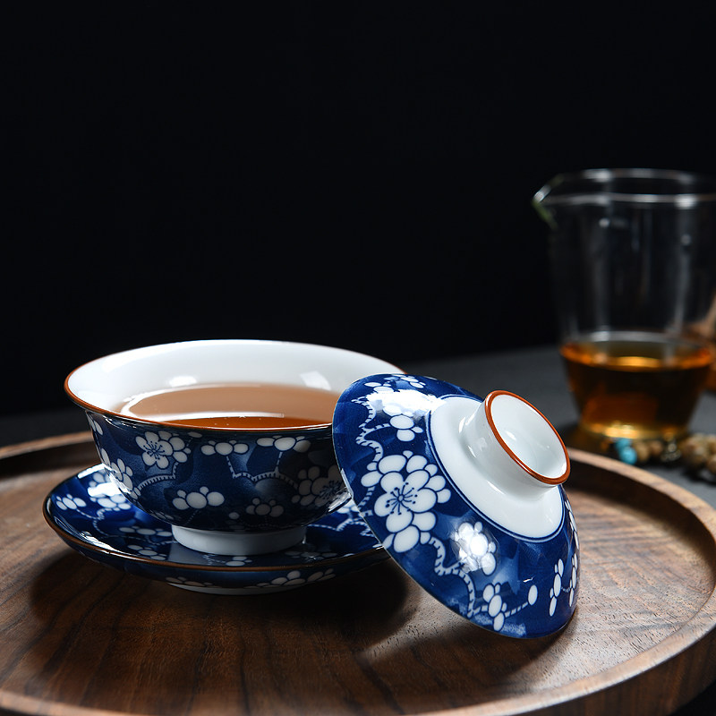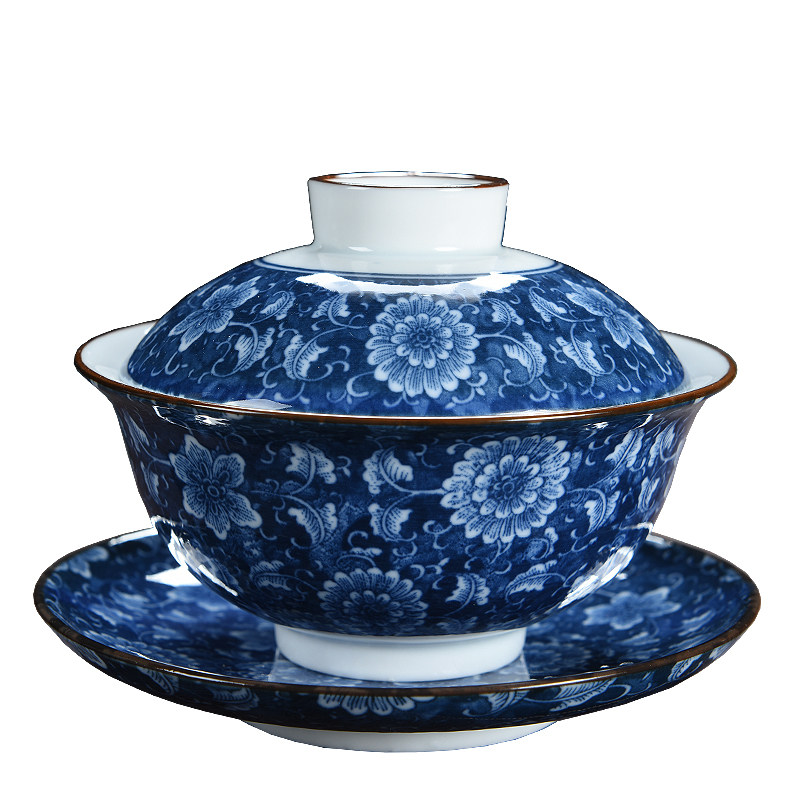 Cover a single tea cup of tea cup Blue porcelain cup large ceramic kung fu tea set three-tall bowl to tea bowl