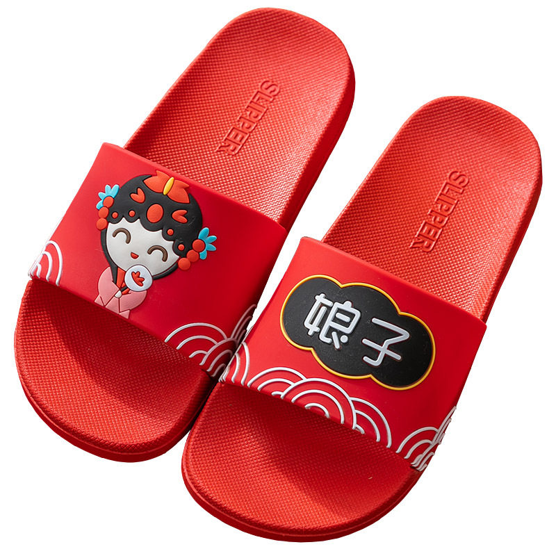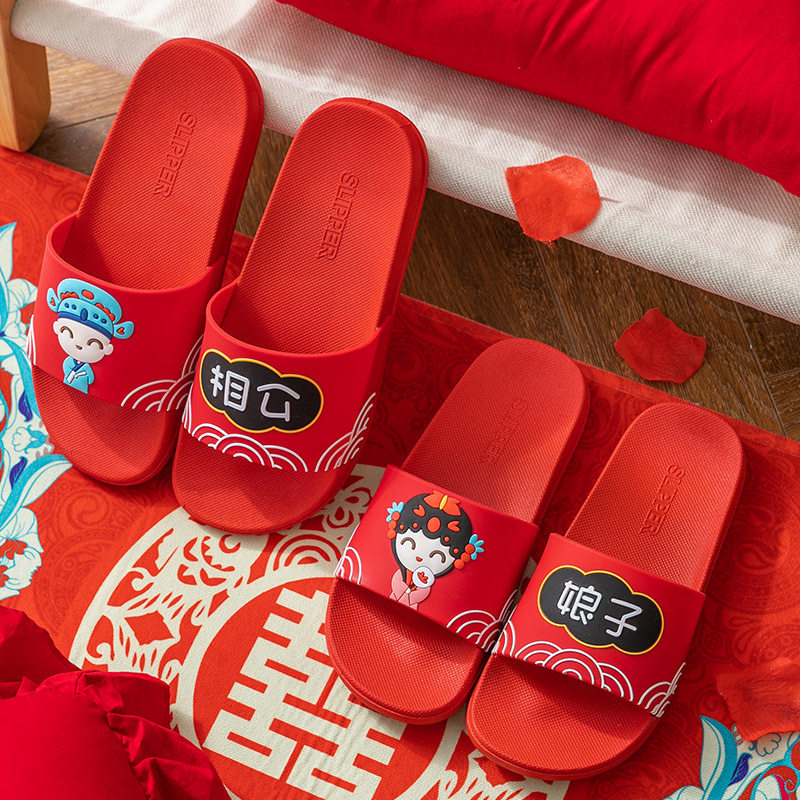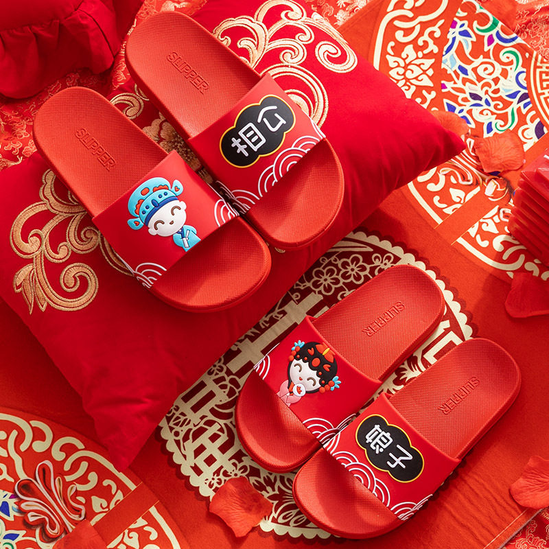New wedding sandals and slippers female summer wedding dowry couple festive red wedding slippers one pair two pairs net red