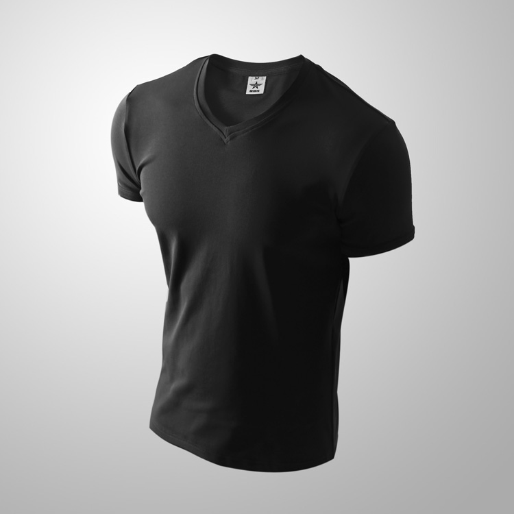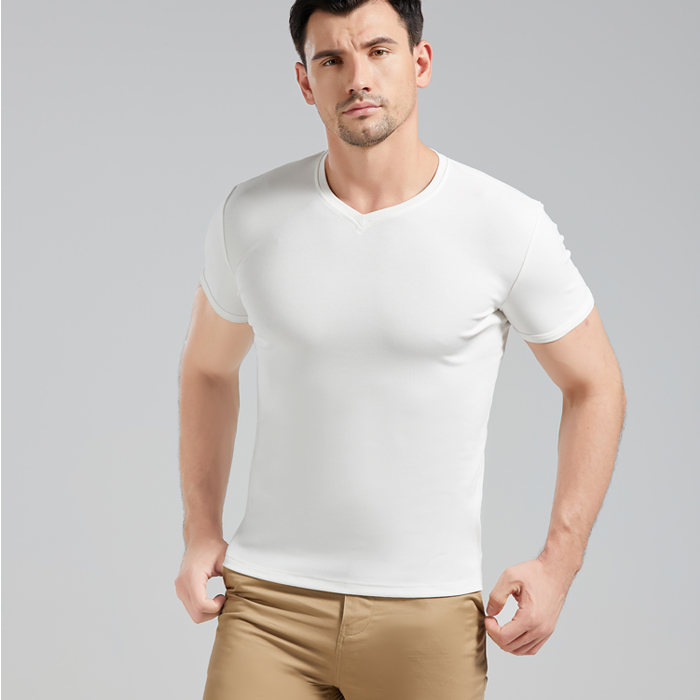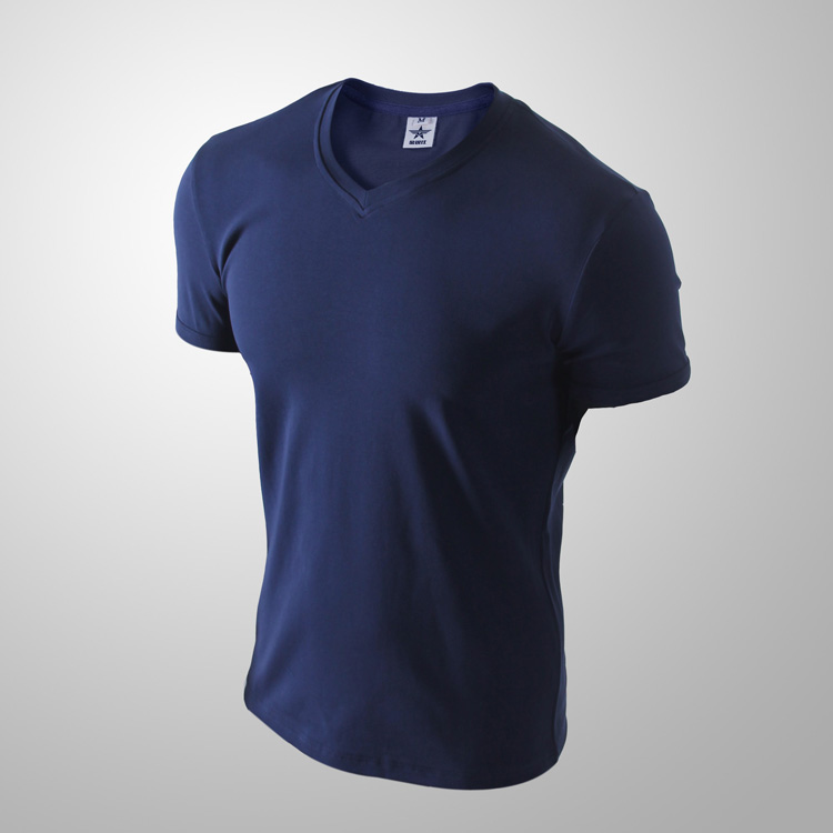 V collar V-neck T-shirt thickened elastic male sweatshirt pure cotton beating bottom short sleeve short sleeve grey white black blue fix