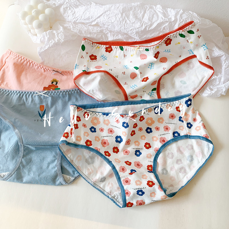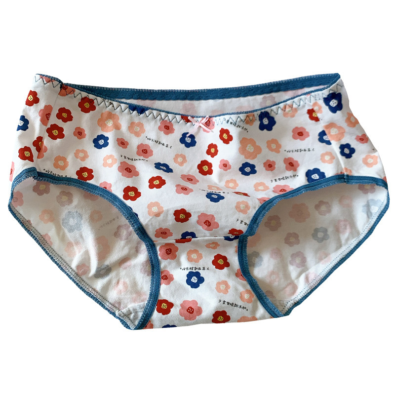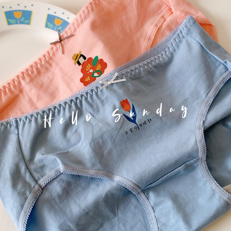 Small fresh girl summer thin panties pure cotton bow cute flower briefs breathable Japanese