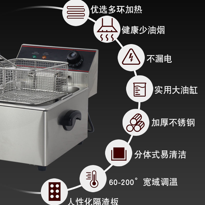 Single-cylinder electric fryer (double safety protection device) 2 kW 4 liters (EF-4L) Single-cylinder electric fryer(double safety protection device) 2 5 kW 6 liters(EF-6L)