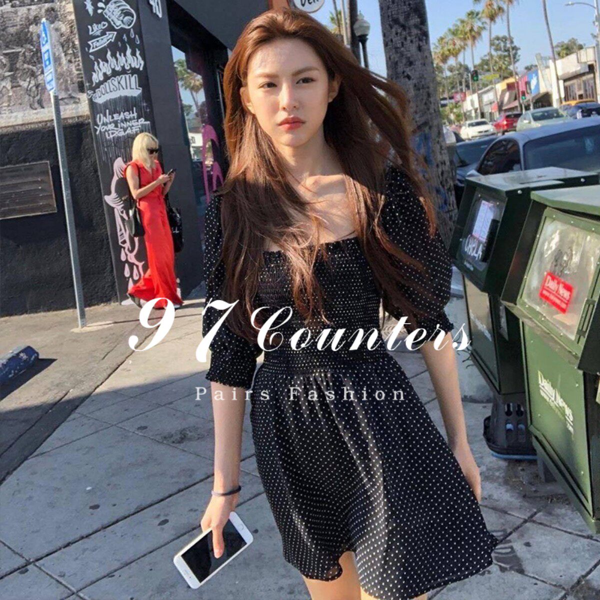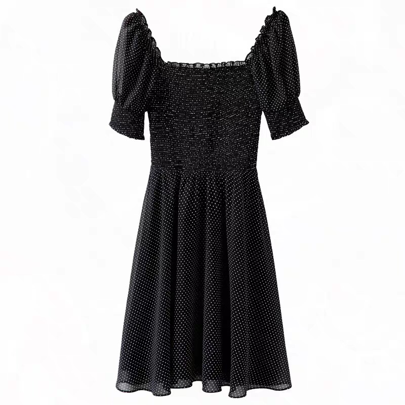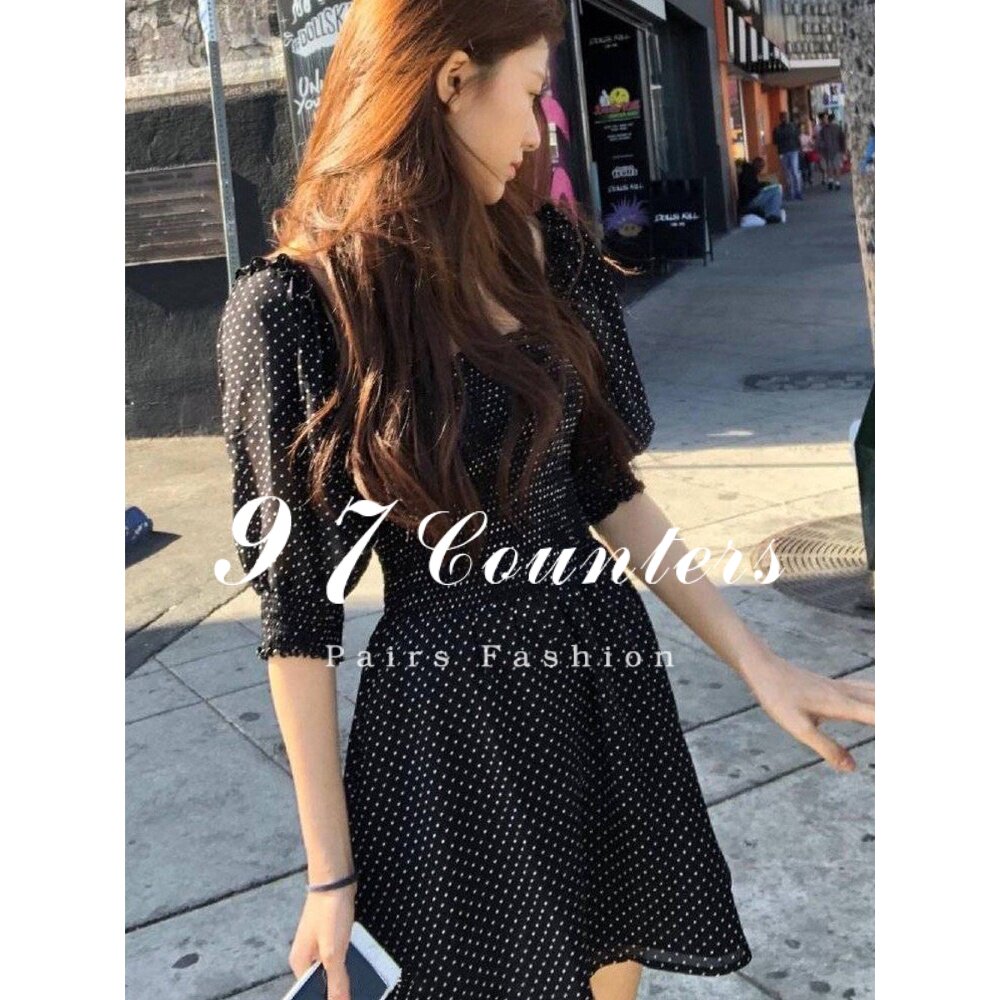 sandro asw puff sleeve dress women's 2022 summer new waist and thin square collar chiffon polka dot skirt