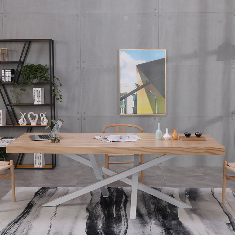 Iron conference table long table solid wood desk American industrial style dining table rectangular workbench negotiation table