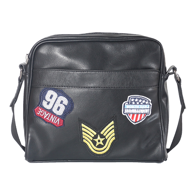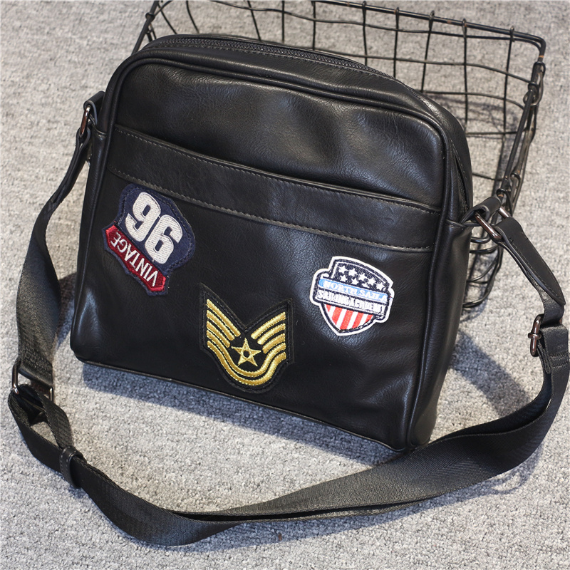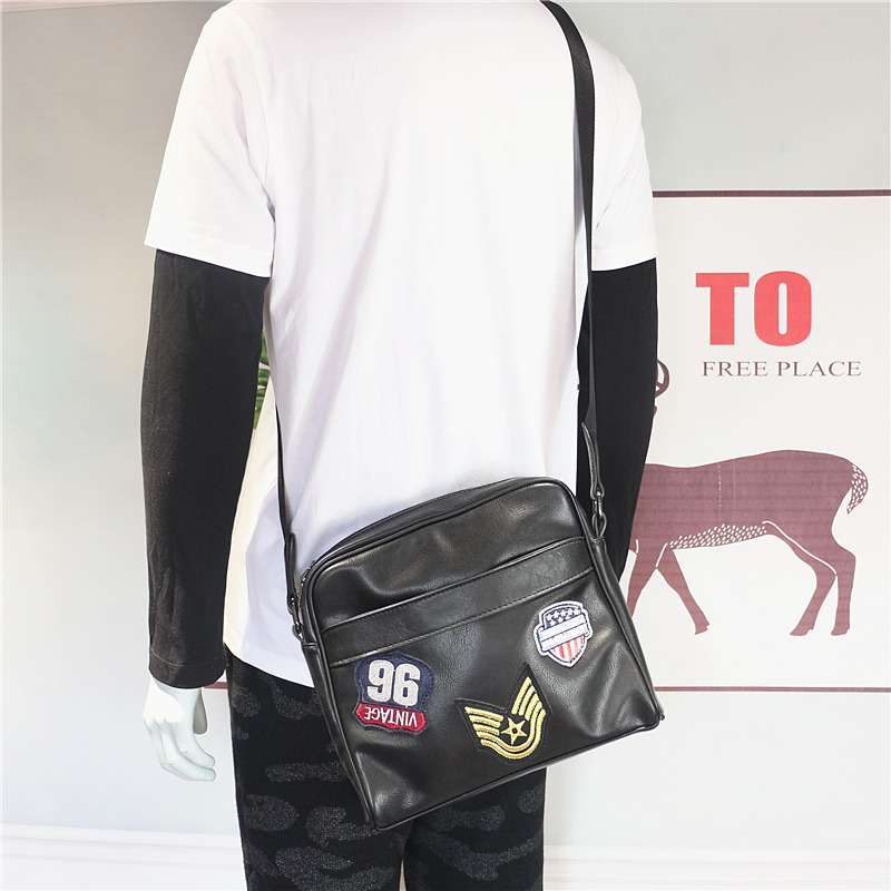 Shoulder bag men's Korean version of the trend fashion badge oblique cross bag men's horizontal section soft leather men's casual bag Large capacity postman bag
