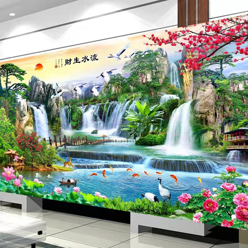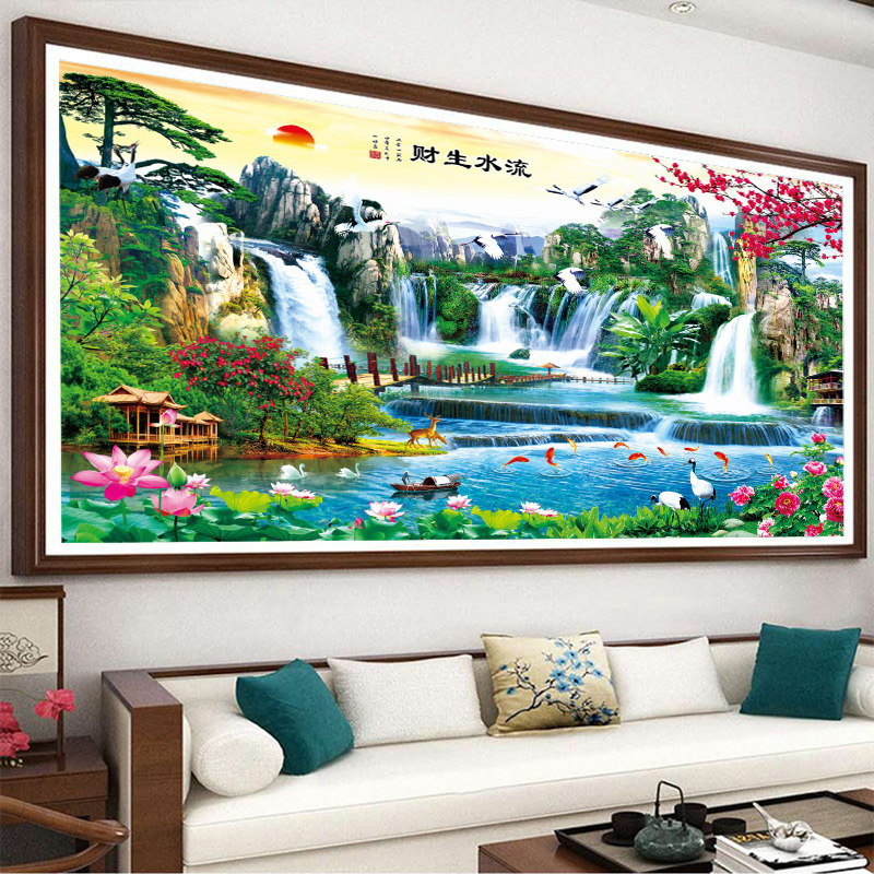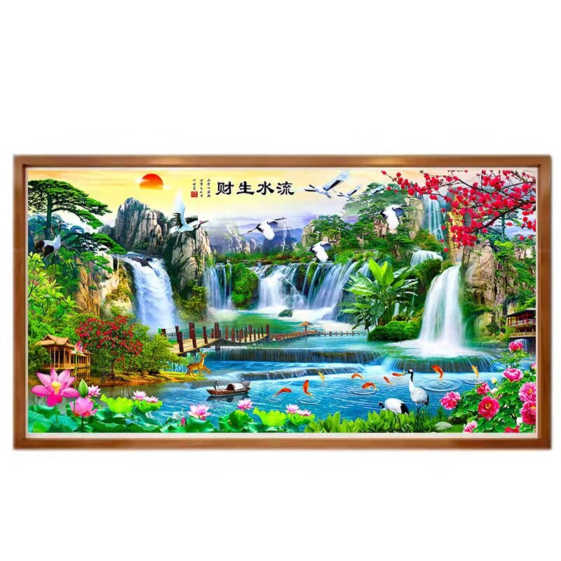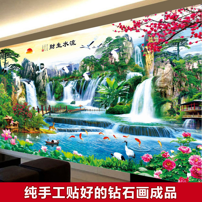 Pipeline diamond finished product pure hand-made new drilling resources rolling drawing room landscape and water painting