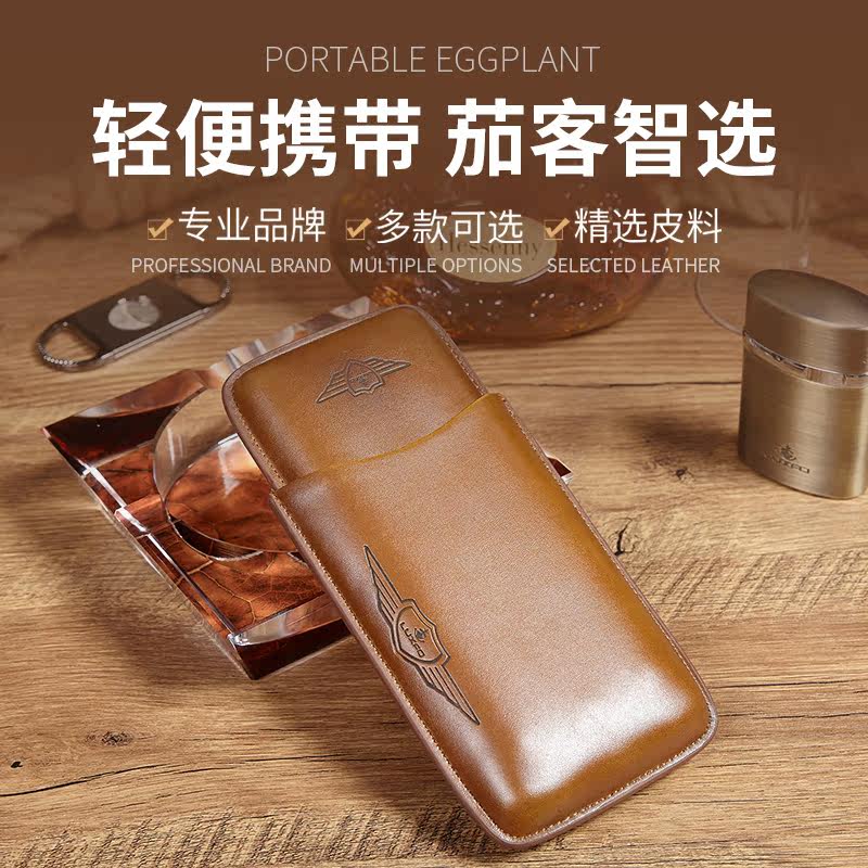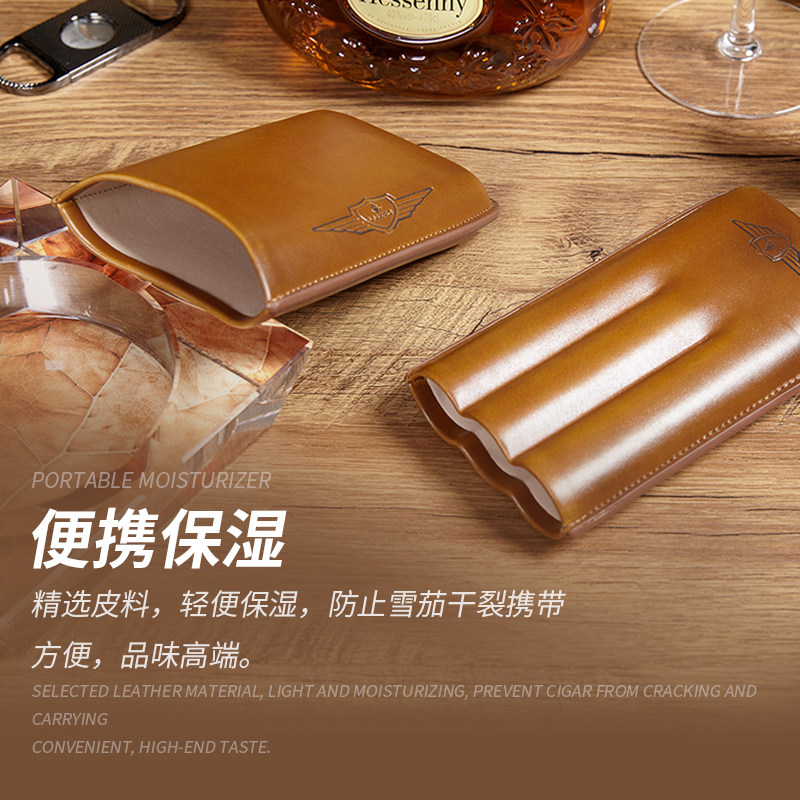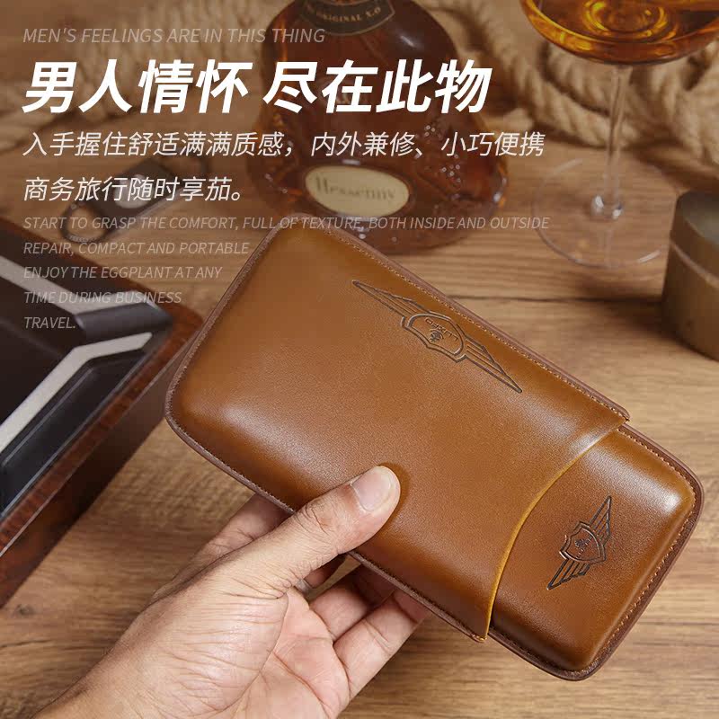 LUXFO Portable Cigar Case Leather Cigar Tube Travel Portable Cigar Protective Case Men's Cigar Case 3 Pack