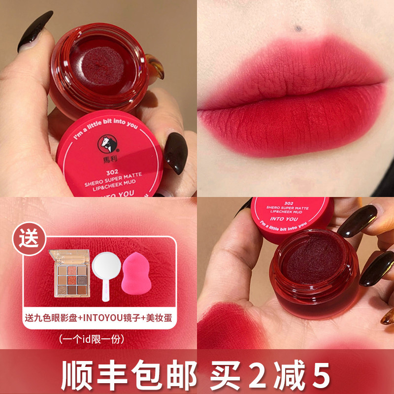 Heart mousse with your heroine in matte and foggy lips and cheeks.