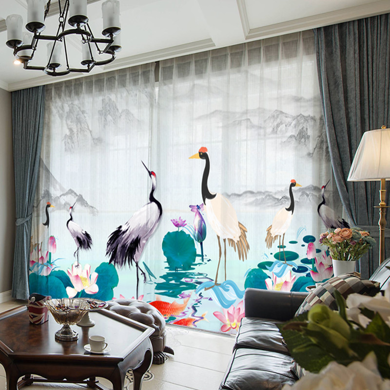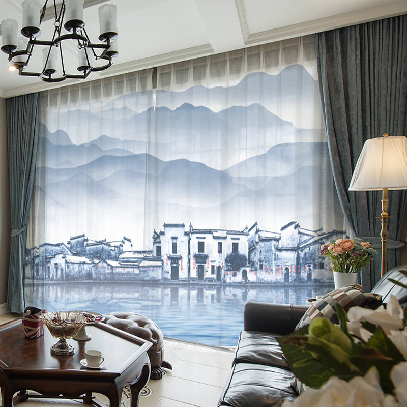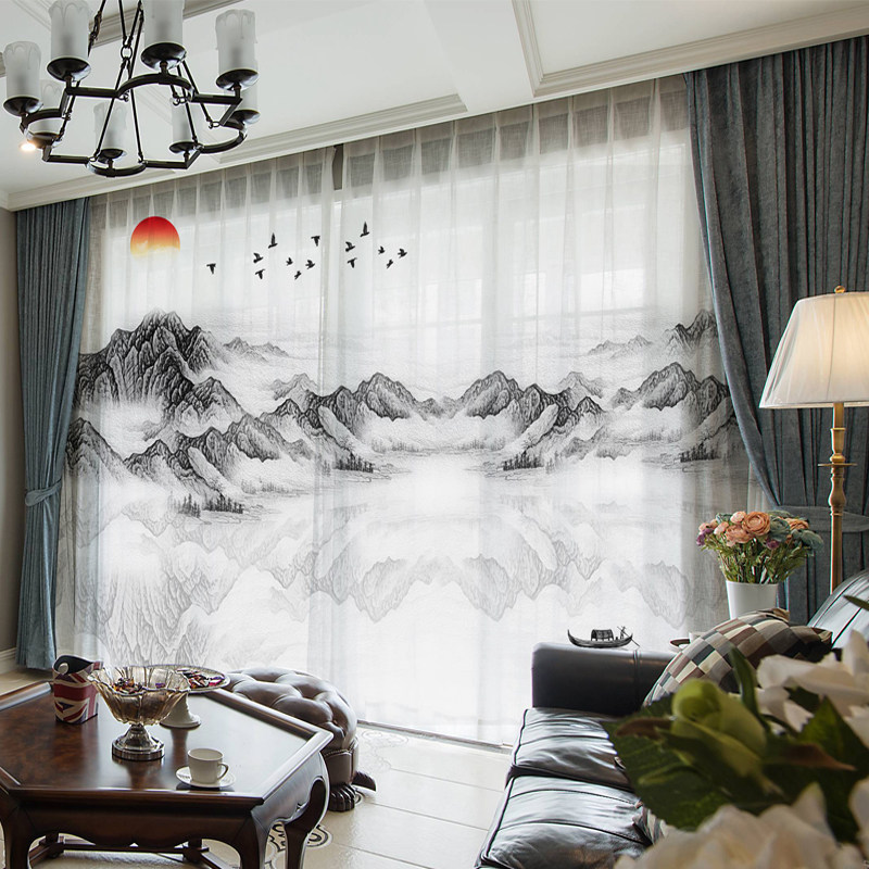 Modern hotel name Cebu New Chinese ink landscape painting Curtain Yarn Curtain Living Room Office Tea Building Shading Cloth Custom