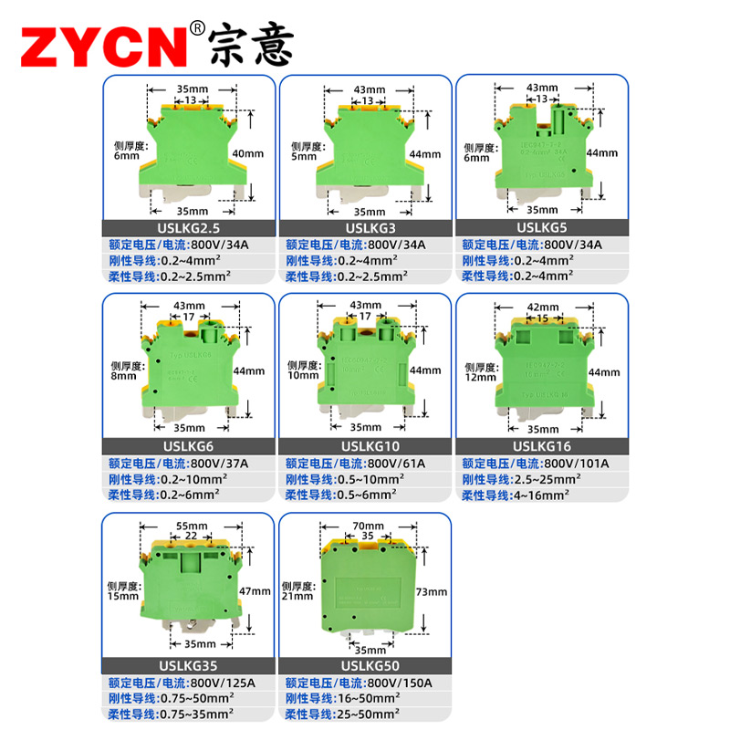 USLKG2 5 5 10 Dual-color voltage yellow-green grounding terminal UK terminal terminal UK2 5B 0 2-60MM
