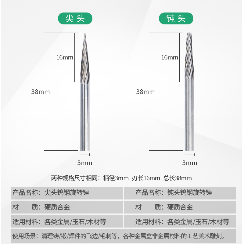 Tungsten steel carbide rotary filing milling cutter round small metal grinding head alloy milling cutter tungsten steel head