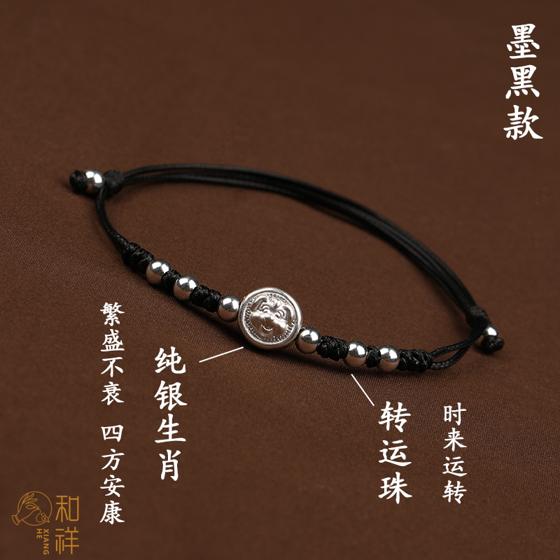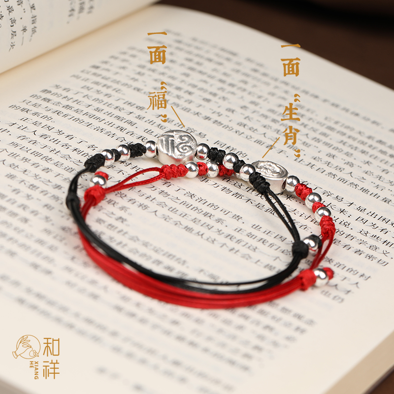 Red rope anklet note Chinese zodiac inscription black rope anklet note Chinese zodiac inscription